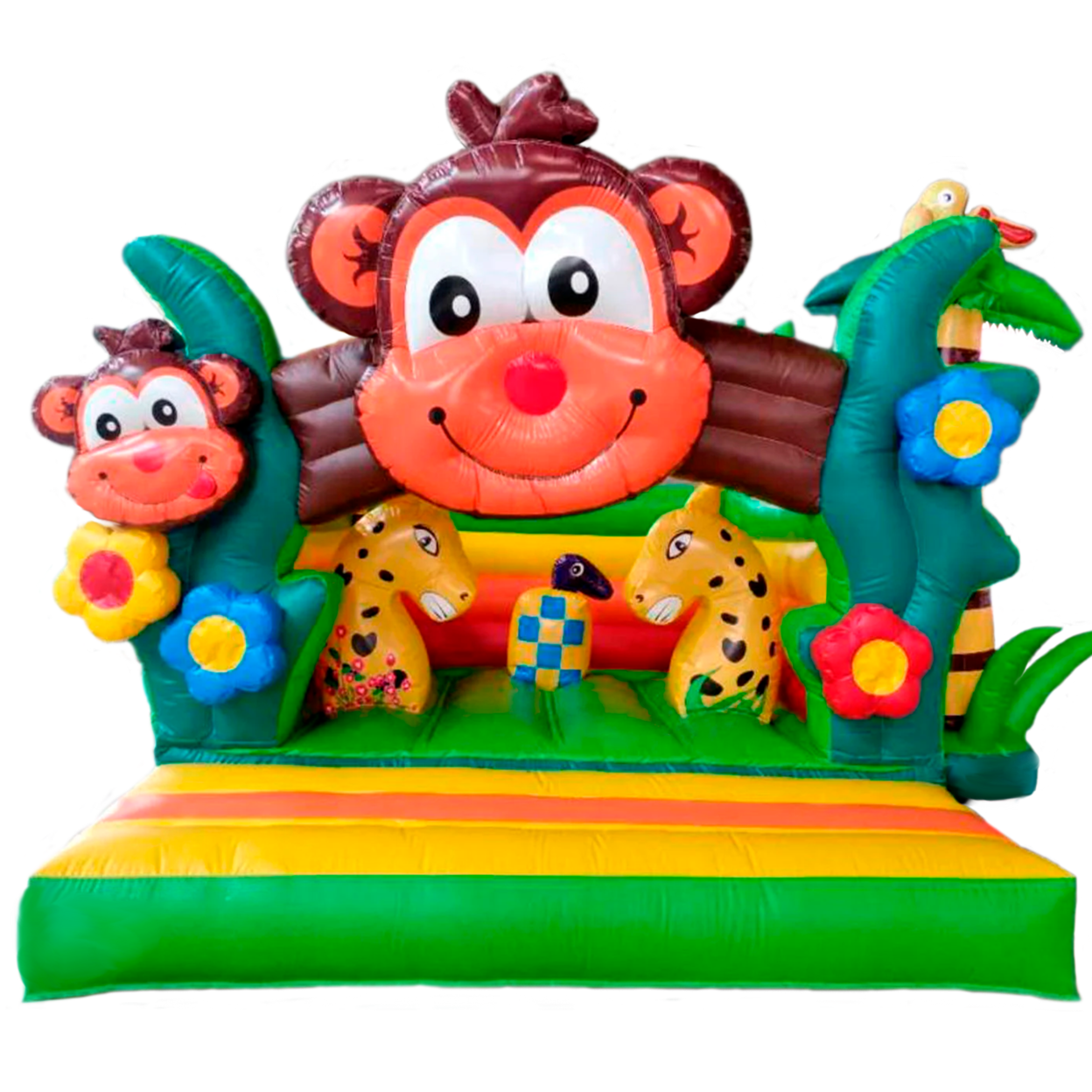 Батут Обезьянка - это батут из нашей коллекции мини-батутов для самых маленьких. Забавная и веселая мартышка перенесет малышей в сказочный лес, где гуляют 38 попугаев и добрый удав, маленький слоненок и пятнистый жирафик. Здесь практически Африка, в которую ходит не только можно, но и нужно! Ведь она красочная, забавная и надувная!!!